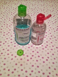 Küçük bir açıklama yapmam gerekirse, misel solüsyon dediğimiz su kıvamında makyaj çıkarıcı sıvılardır.Fotoğrafta da görüldüğ üzere, Sensibio H2O olan (sağdaki minik) hassas ciltli kişiler için geliştirilmiş.Soldaki Sebium H2O'nun özelliği ise karma ve yağlı ciltler için geliştirilmiş. Her ikisi de hem yüz hem göz makyajı temizlemesinde kullanılabiliyor.